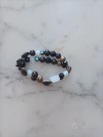Bracciale elastico con pietre verde-grigia