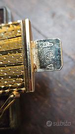 Bracciale a maglia placcato in oro , acquistato circa 35 anni fa presso una gioielleria a Torino ( vedi marchio sulla scatola originale dell epoca che si vede nelle foto) , lunghezza 20,5 centimetri, larghezza nel punto più largo 3 centimetri circa, peso circa 170/ 180 grammi.Oggetto di buona fattura ed ottima placcatura presente ed uniforme in tutte le parti del bracciale. Consegna a mano in provincia di Torino o spedizione tramite subito.it.