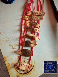 Bracciali messaggeri. Crea il tuo hashtag preferito e indossarlo! Targhetta in ottone e filo sintetico rosso, colore porta fortuna. Noi Siamo Creazioni