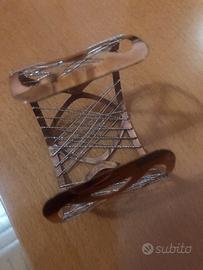Bracciale largo con scheletro dorato e fili in argento trasversali. Aperto nella parte inferiore tipo alla schiava. Usato poco e’ un po’ annerito per non uso ma puo’ essere pulito