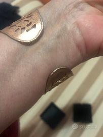 Bracciale largo in metallo dorato tutto cesellato sembra un merletto. Aperto nella parte inferiore tipo alla schiava. Non usato. Si prega di non chiedere contatti privati perche’ posso trattare solo sulla piattaforma
