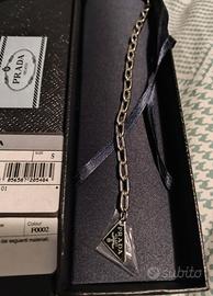 Vendo bracciale a catena Prada in argento con pendente a triangolo smaltato, mai indossato ancora pellicolato, completo di scatola e cartellino.