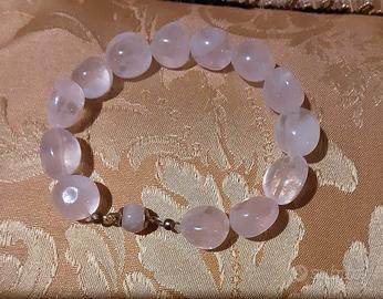 Bracciale grandi sfere di Quarzo rosa con fermaglio d' argento 800 e Quarzo Rosa del'900,fondo negozio .Originale monile assemblato con pezzi d'epoca ,come potete vedere è un bracciale elegante,pezzo unico:bello.!.Misure : lunghezza cm 20 aperto, le sfere misurano cm 1,3 circa di diametro ,unisex.Spedisco ovunque, la consegna avviene tra le 24 ore e i 5 giorni, secondo la formula che sceglierete.