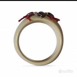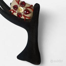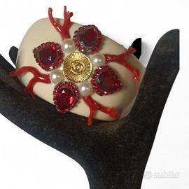 Bracciale creato in pezzo unico con componenti vintage vero bottone vintage Chanel e rami di vero corallo. diametro interno 6,6 cm. per info ulteriori contattatemi. grazie