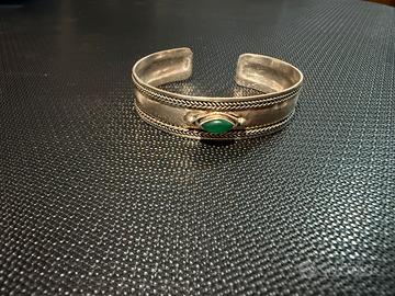 Bracciale regolabile vintage argento 925 con pietra