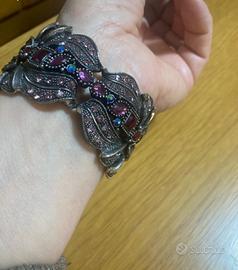 Bracciale rigido in metallo , ornato con cristalli e strass colorati Misura cm 18 x 4 Mai indossato, come nuovo