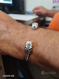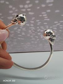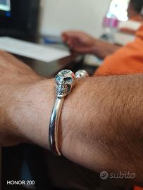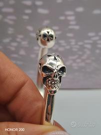 Bracciale argento 925 con teschi grammi 52.40 rigido semi nuovo cincofferenza 6 cm con possibilità di allargarlo .