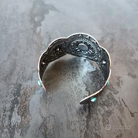 Bracciale Rigido Etnico Argento e Turchese - boho