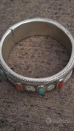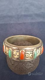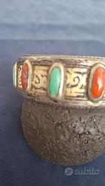 bracciale rigido fatto a mano con osso decorato e pietre preziose