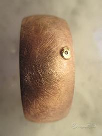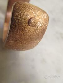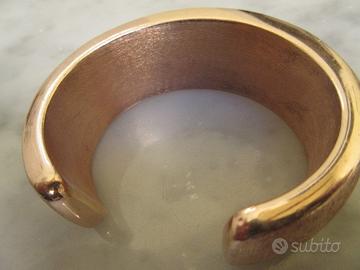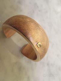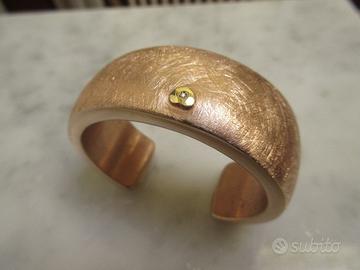 Bracciale schiava rigido in argento dorato. Doratura in oro rosso. Argento spazzolato con al centro un cuoricino lucido con zircone. Perfetto e nuovo. Non utilizzato