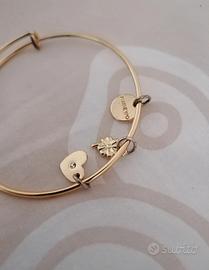 Bracciale rigido con ciondolini. Un po' "rovinato" come è possibile vedere in foto. Ma in buone condizioni. Non si notano i difetti.