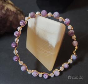 bracciale rigido pietre agata lilla, cristalli