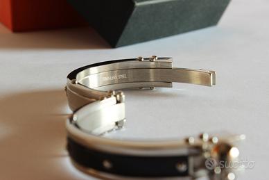 Vendo bellissimo e rarissimo, praticamente introvabile, bracciale da uomo in acciaio inossidabile dotato di comoda e funzionale chiusura a scatto. Come in foto, compreso di scatola. Il regalo perfetto per la lei che desidera un regalo esclusivo per "ammanettare" al suo cuore il proprio lui.