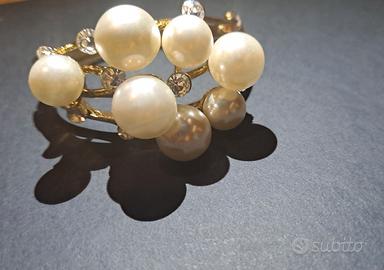 * Materiali: Perle finte (colore crema/avorio), strass/cristalli luminosi, metallo color oro
