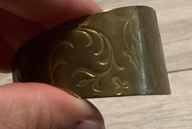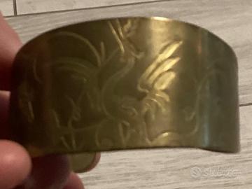 Vendo bracciale rigido con incisioni floreali. Colore ottone/bronzo Buone condizioni Comodo e regolabile Ideale come accessorio vintage o regalo. Prezzo trattabile. Spedizione veloce e accurata