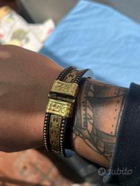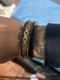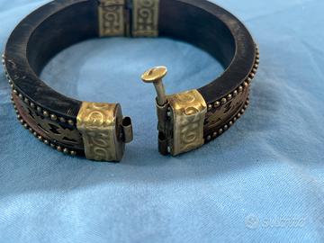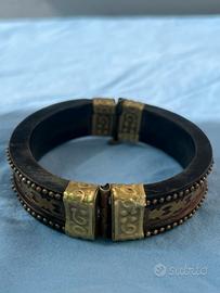 Bracciale rigido vintage in ebano e ottone