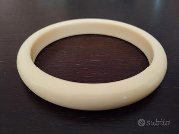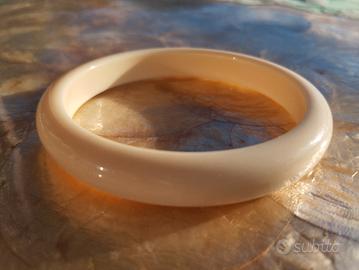 Bellissimo bracciale realizzato in materiale plastico che, trattandosi di un pezzo vintage, potrebbe essere bachelite, ma non ho certezza.
