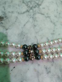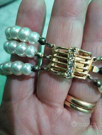 Bracciale con perle artificiali e perle Ematite chiusura gioiello