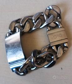 Bracciale in acciaio inossidabile con piastra centrale e bracciale a catena. Lunghezza 22 cm.