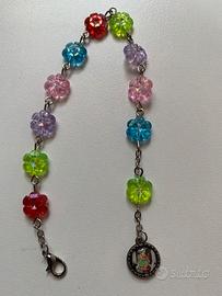Rosario a bracciale, ogni grano è a forma di fiore vari colori.