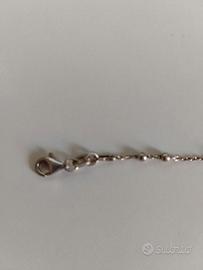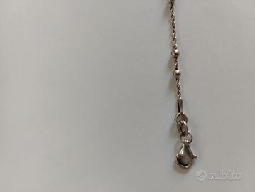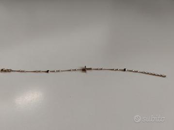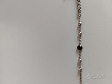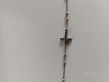 Bracciale ROSARIO in argento 925 con croce e tramezzi in zirconi neri mai usato. Lunghezza totale: cm 22 circa