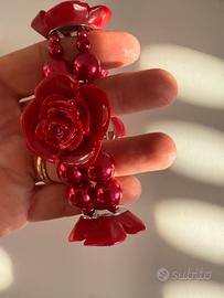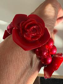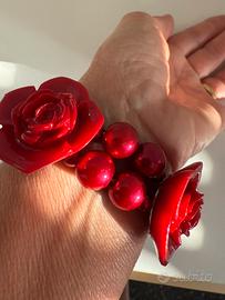 Bracciale rosso con perle e rose