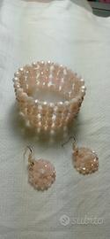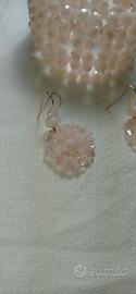 Bracciale e orecchini con Swarovski rosa in vetro lavorato a mano