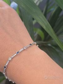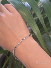 Splendido bracciale originale Salvini in oro bianco massiccio 18 carati con 10 diamanti naturali taglio brillante h color di caratura totale 0,35 e 10 zaffiri naturali di caratura complessiva 0,75.
