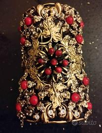 Bracciale vintage a schiava dorato anticato con pietre dure in lega similare ottone .stilevittoriano revival. Bigiotteria. Bracciale altezza cm 10,5 diametro 6 e 7 cm. Nuovo.