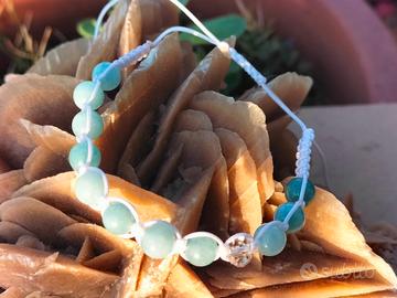 Bracciale Shamballa realizzato a mano con perline di alta qualità di Calcedonio Acquamarina da 6mm,inserimento di 1 perlina in cristallo.