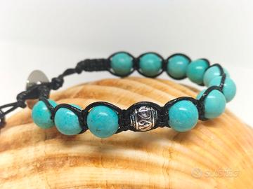 Bracciale Shamballa realizzato a mano in stile tibetano con perline di ottima qualità di turchese da 8mm.