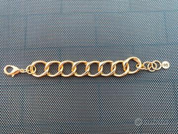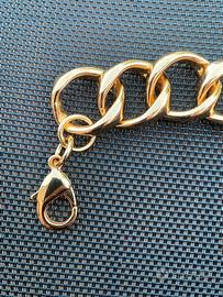 BRACCIALE SOVRANI IN OTTONE PLACCATO ORO GIALLO CATENA VISTOSA CON CHIUSURA A MOSCHETTONE. IL BRACCIALE MISURA 21 CM ESTENDIBILE FINO A 23 CM.
