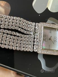 Bracciale strass a nove file con orologio che non e’ funzionante non so se per la pila o per funzionamento ma comunque bello come bracciale