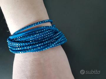 Elegante bracciale Swarovski blu, perfetto per aggiungere un tocco di luce al tuo look. Presentato nella dua scatola originale.