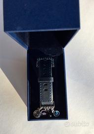 Splendido bracciale originale Swarovski da donna. Il cinturino è realizzato in vera pelle blu scuro con eleganti cuciture a contrasto, regolabile come un orologio per adattarsi perfettamente a ogni polso.