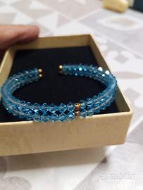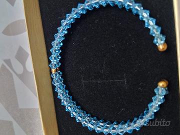 Elegante bracciale Swarovski con finitura sfaccettati. Misura regolabe ,è aperto - Cristalli di colore turchese - Dettagli in oro 750.