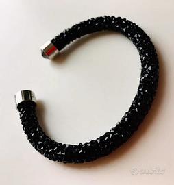 Bracciale rigido In acciaio inossidabile e tempestato di cristalli neri Tenuto in condizioni perfette, pagato €75