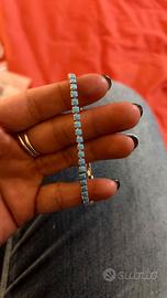 Bracciale stile tennis con brillantini azzurro. Per polso piccolo.