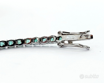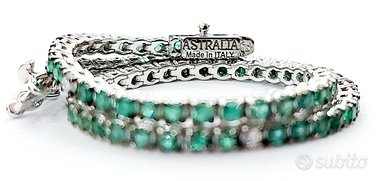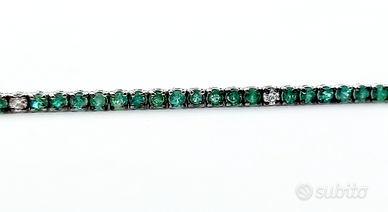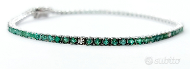 Bracciale Tennis "Astralia" in Oro Bianco con Smeraldi e Diamanti 18 kt (750)