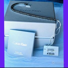 Bracciale tennis acciaio e zirconi neri Calvin Klein Jeans. Misura 16.5 cm. Nuovo con etichetta. Valore di mercato euro 105, come da cartellino.