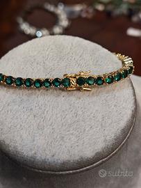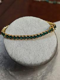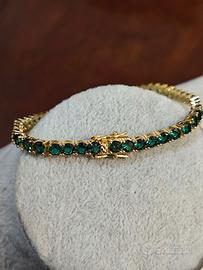 bracciale tennis in acciaio placcato oro impreziosito da zirconi prima qualità A4 nuovo con doppia chiusura resistente accessorio elegante unisex