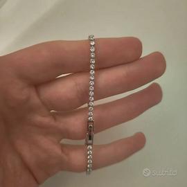 ⭐ Eleva la tua collezione di gioielli con questo splendido bracciale tennis in argento 925, impreziosito da scintillanti zirconi cubici bianchi da 2 mm. ⭐ Stile e Vestibilità: Progettato per un’estetica senza tempo in stile Y2K / old money, la sua lunghezza di 19 cm offre una vestibilità comoda e unisex. ❤️ Condizioni e Materiale: In eccellenti condizioni pre-loved, argento liscio e zirconi che catturano la luce in modo meraviglioso. Argento 925 resistente e di alta qualità, con una brillantezza autentica. ⭐ Un pezzo raro, un vero statement, pronto ad aggiungere eleganza e fascino al tuo stile quotidiano. è placcato