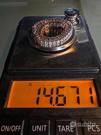 Peso complessivo: 14,66 g (circa 13 g di oro + diamanti).