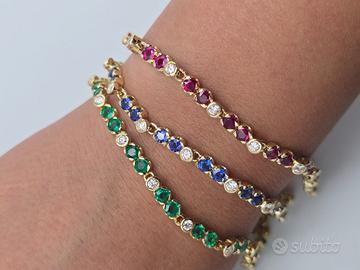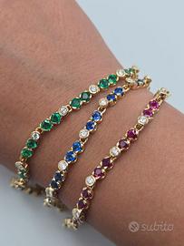 Meraviglioso bracciale tennis in oro giallo massiccio 18 carati con 30 rubini naturali taglio brillante primissima scelta di 3 carati complessivi e 16 diamanti naturali taglio brillante g color vvs di 0,75 carati totali.