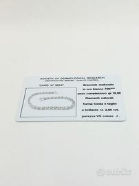 Bracciale tennis in oro bianco 18 kt ( 750 ‰ ) di gr. 10.90 impreziosito da diamanti naturali taglio brillante per complessivi ct. 2.80 purezza VS colore J.