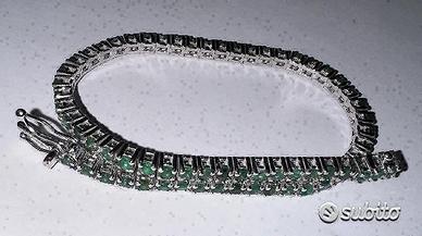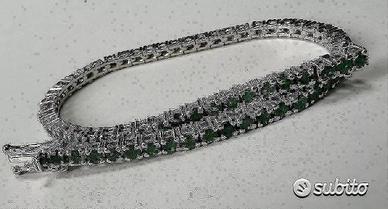 BRACCIALE TENNIS IN ORO BIANCO 750°/°° - 18 carati CON SMERALDI NATURALI DI TAGLIO TONDO 73 smeraldi : ct. 3,53 Tennis con chiusura, con doppio lotto di sicurezza lunghezza bracciale : cm. 17,5 peso gr. : 9,40 ( possibile cambiare lunghezza del bracciale per qualsiasi informazione contattateci) altre foto richieste via email spedizione con assicurata tramite Poste Italiane