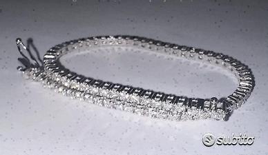 BRACCIALE TENNIS IN ORO BIANCO 750°/°° - 18 carati CON DIAMANTI* NATURALI TAGLIO BRILLANTE Tennis con chiusura, con doppio lotto di sicurezza come da foto 71 diamanti ct. : 2,52 colore : G - purezza : VS lunghezza bracciale cm. 17,7 peso oro gr. : 8,60 ( possibile cambiare la lunghezza del bracciale, per qualsiasi informazione contattateci) altre foto richieste via email spedizione con assicurata tramite Poste Italiane