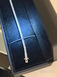Bracciale tennis in oro 18kt, struttura pesante (10gr) con diamanti naturali per 1,30ct g color vvs. Misura lunga adatta anche a uomo, altrimenti accorciabile a misura. Prezzo leggermente trattabile, gioiello nuovo con garanzia commerciante. Si garantisce e pretende massima serieta’.