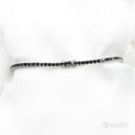 Elegante bracciale tennis in oro bianco 18 carati dal peso di 9,9 grammi, impreziosito da diamanti neri per un totale di 2,85 carati.