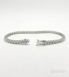 Bracciale oro bianco 18 kt ( 750 ‰ ) di grammi 12.20 modello tennis con diamanti naturali forma tonda taglio a brillante di ct 3.40 totali; purezza VVS colore G.